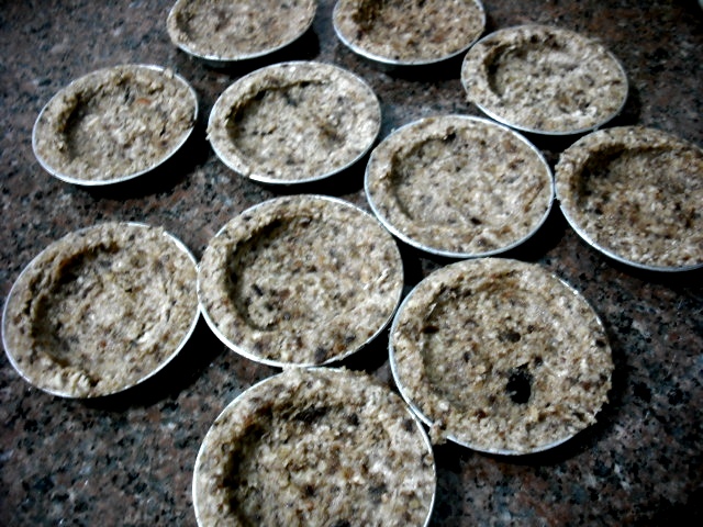 Fiz apenas uma torta pra testar e usei meia banana amassada, acrescentei um pouco de granola e fiz uma pasta.